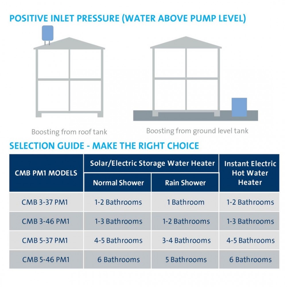 All models come with the PM1 Pressure Manager for intelligent control, activating the pump automatically when water is used.