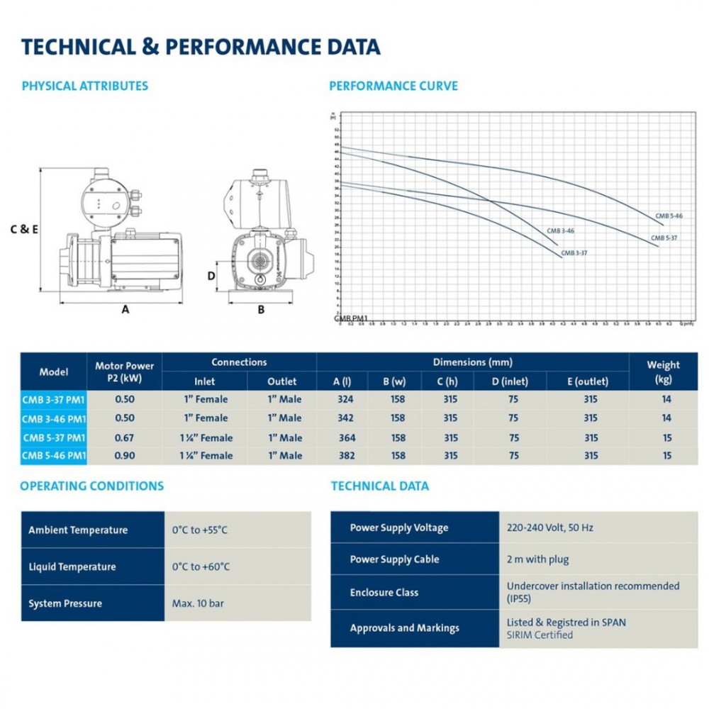 Looking for the Grundfos CMB 3-37 PM1 water pump? This model is now available at our hardware stores located in Shah Alam. As a trusted Grundfos Water Pump Supplier in Shah Alam, we provide reliable stock, competitive pricing, and responsive service. Contact our team to check availability and get the latest promotional price.